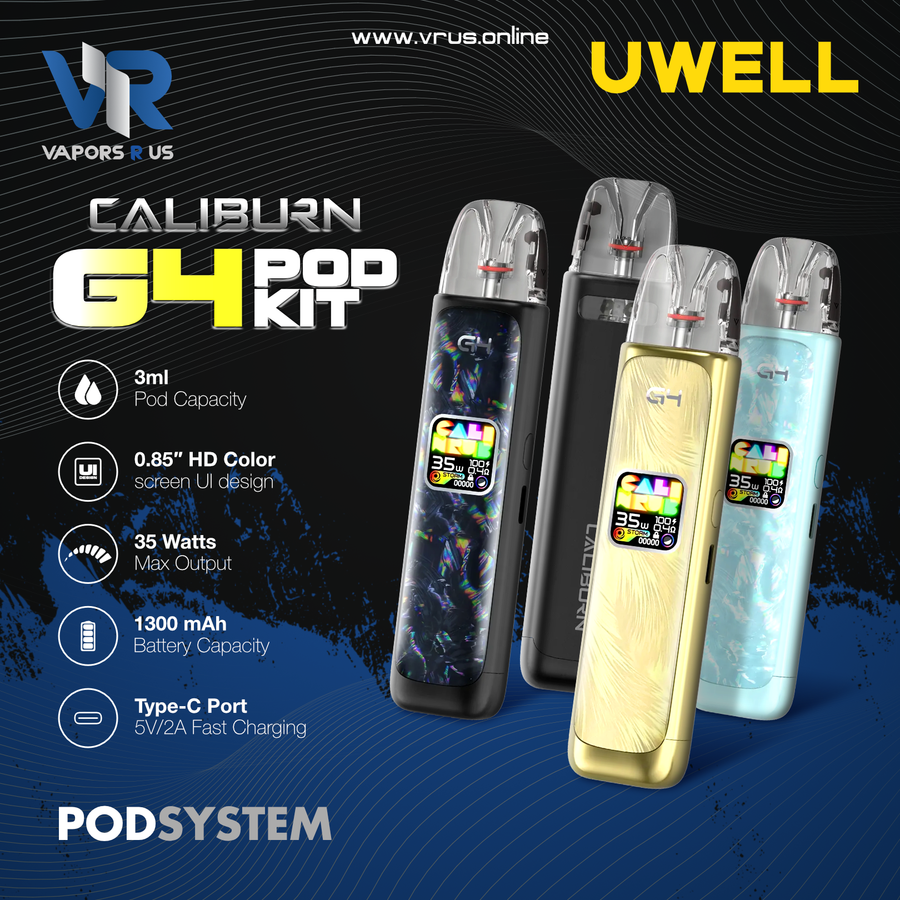 The UWELL Caliburn G4 is the latest evolution in the Caliburn series offering impressive power, smart features, and exceptional flavor in a compact, stylish device. With a massive 1300mAh battery, a high-definition color screen, and adjustable wattage up to 35W, the G4 is designed to give users full control over their vaping experience.