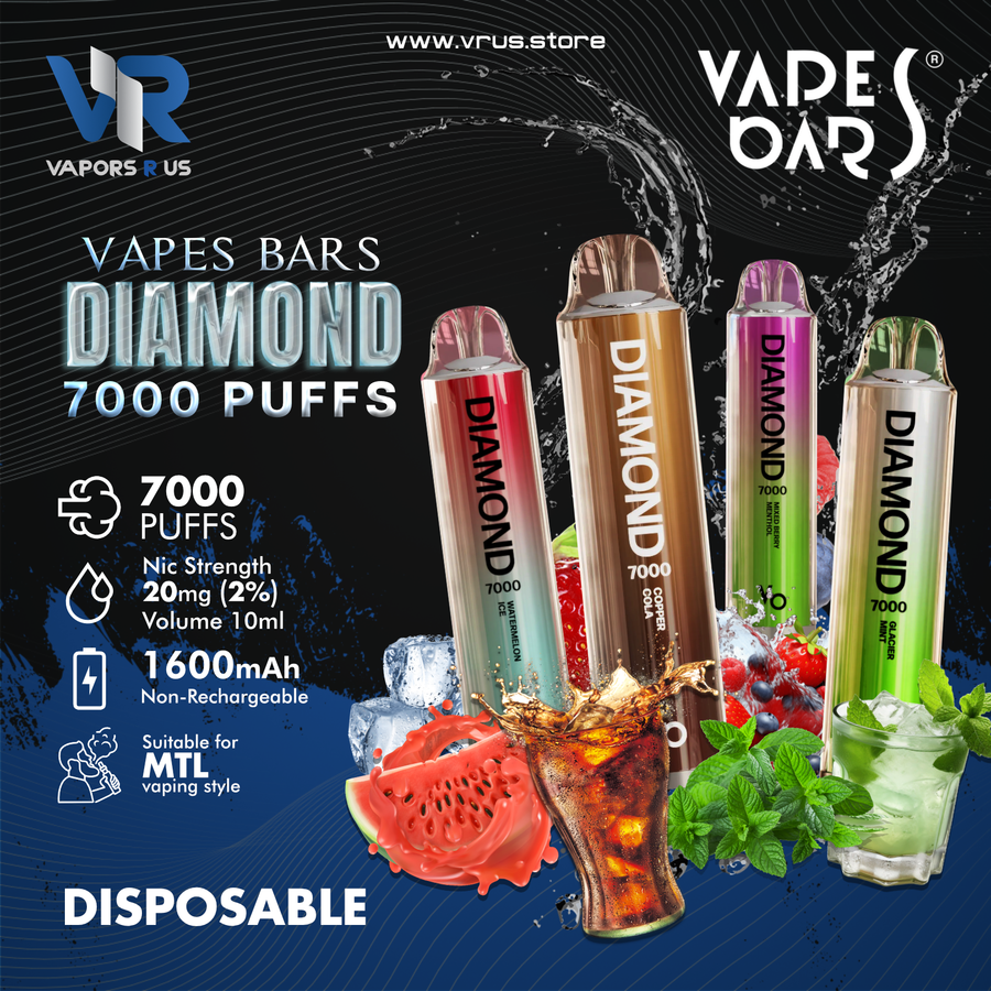 Experience the smooth and long-lasting flavors of Vape Bars -Diamond 7000 Puffs (20MG). Each puff delivers a satisfying hit with 20MG of nicotine, providing a perfect balance for your vaping needs. Enjoy up to 7000 puffs per bar and indulge in the ultimate vaping experience